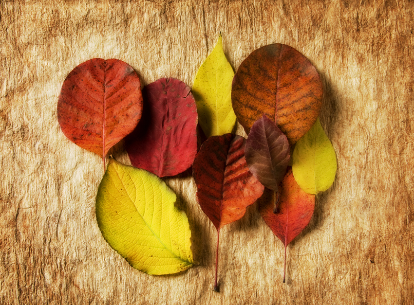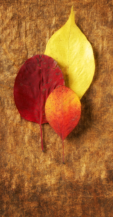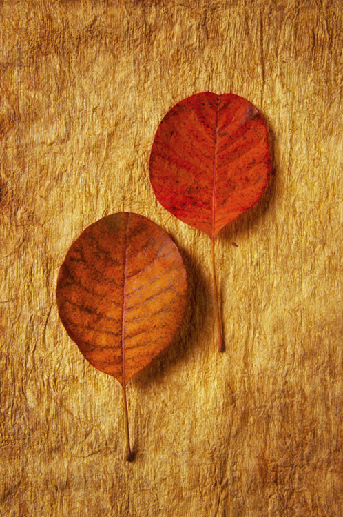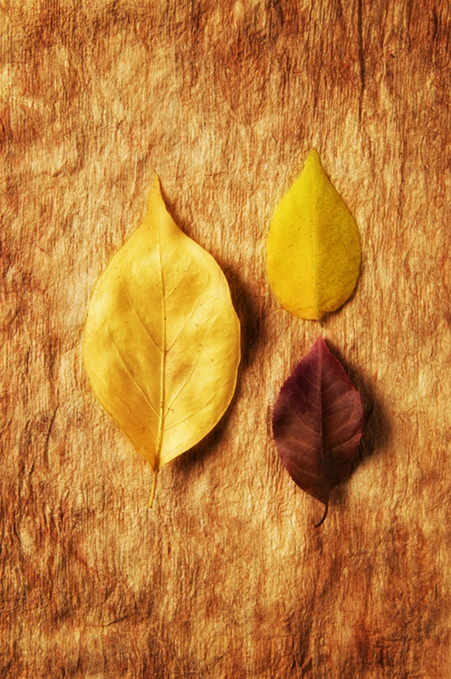 The following images are a simple set up in the studio of Autumn leaves gathered from the yard around the studio. The Photoshop adjustment of each image was duplicating layers, saturating the colors of the top layer, switching the blending mode to Overlay, adding about 35 for gaussian blur, adjusting the contrast and pulling back on the opacity to around 35 or 50.