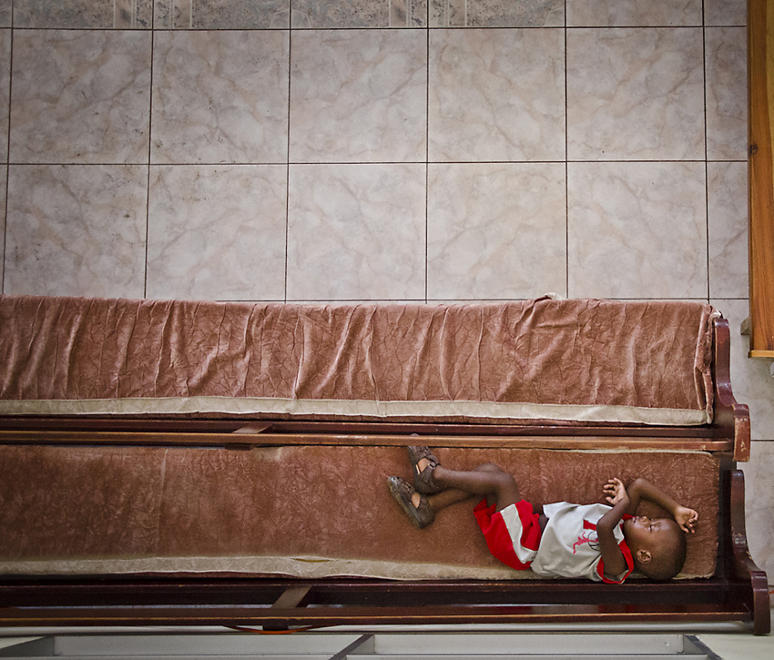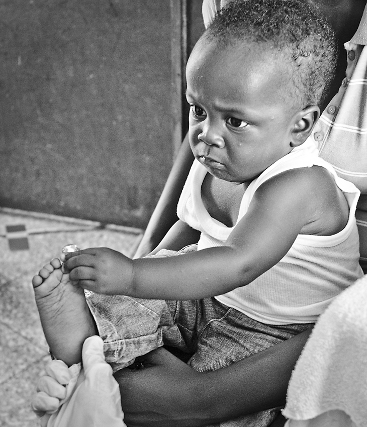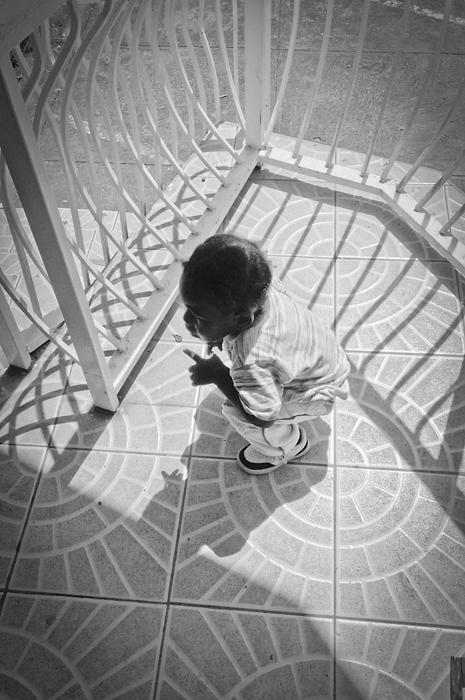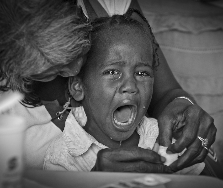This child came out of the clinic waiting room I believe to get away from the crowd and crouched down next to me. I could see tear drops hitting the concrete in front of him.